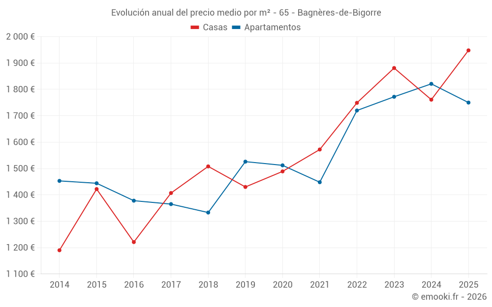 ¿Cuál es el precio por m2 de las casas en Bagnères-de-Bigorre?