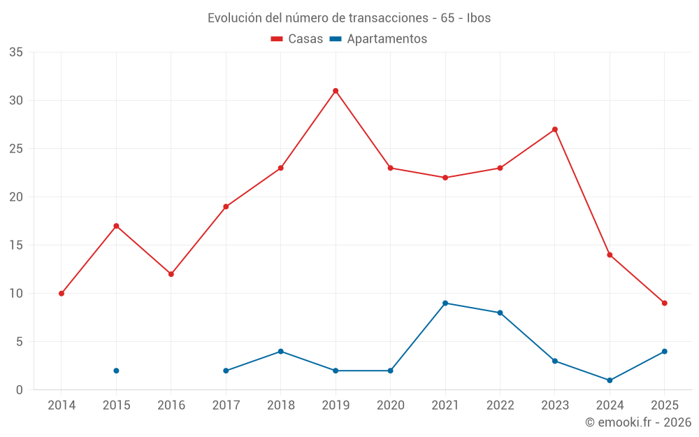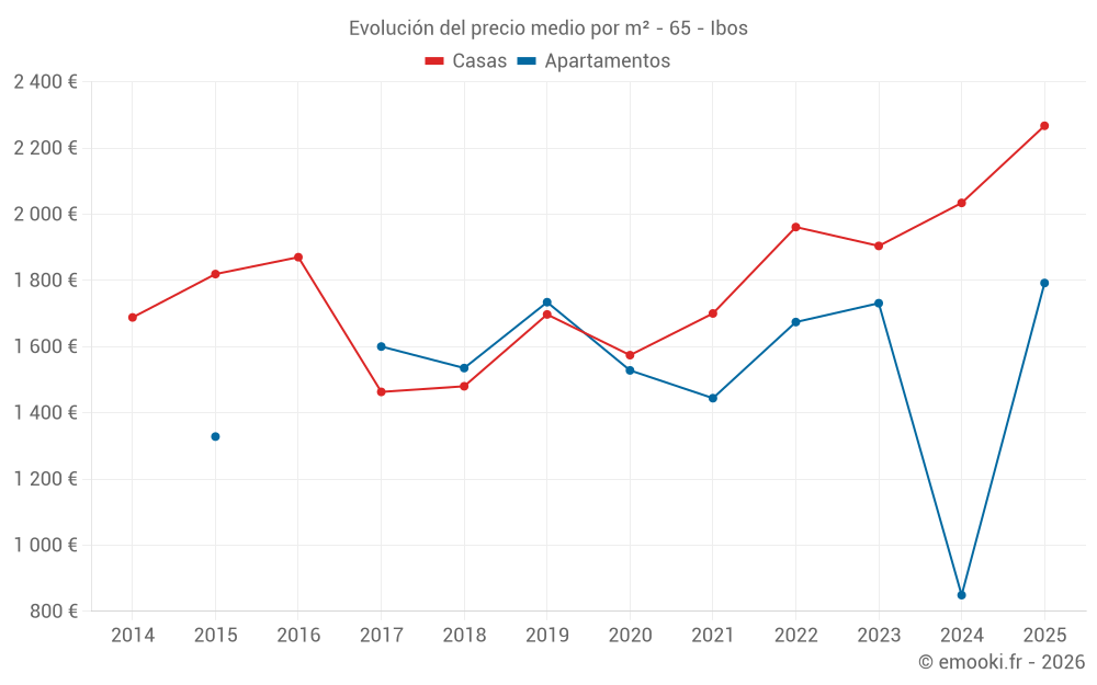 Mapa de precios de la vivienda en la comuna de Ibos, elija una sección para ver las transacciones por parcela.