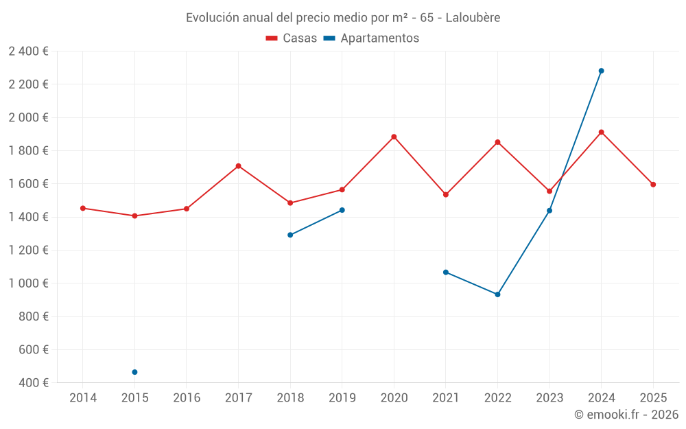 ¿Cuál es el precio por m2 de las casas en Laloubère?