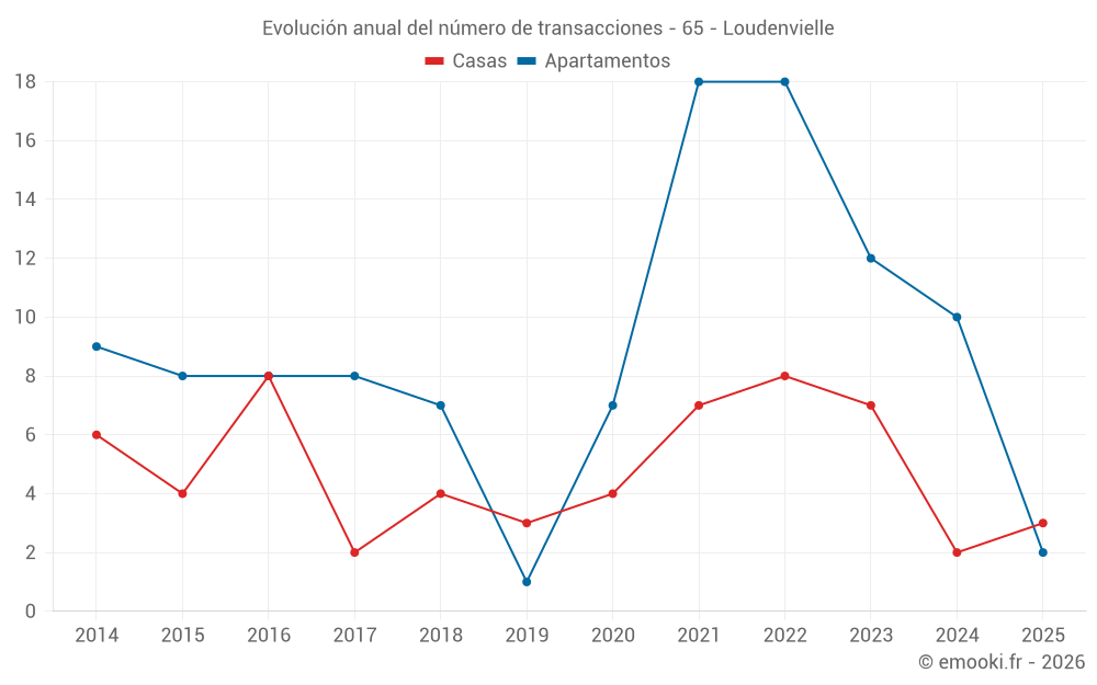 El precio mediano en las 18 transacciones de apartamentos de los últimos 24 meses en la comuna de Loudenvielle fue de 5 224 € por metro cuadrado para un valor patrimonial medio de 212 060 €. Durante este período el 60% de las transacciones estuvieron entre 4 256 y 5 641 € por metro cuadrado (del 2º al 8º decil).