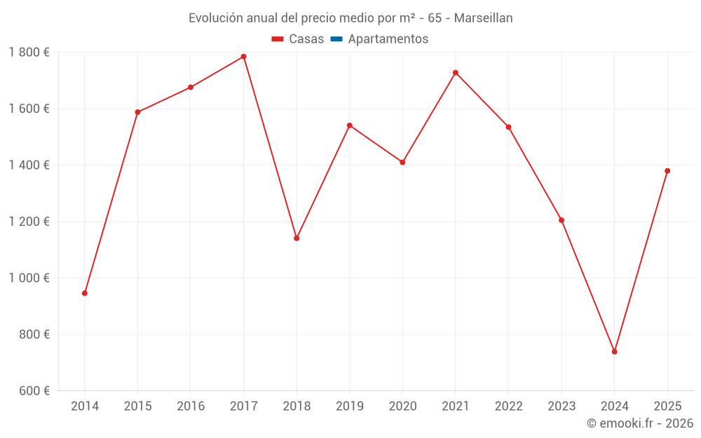 Mapa de precios de la vivienda en la comuna de Marseillan, elija una sección para ver las transacciones por parcela.
