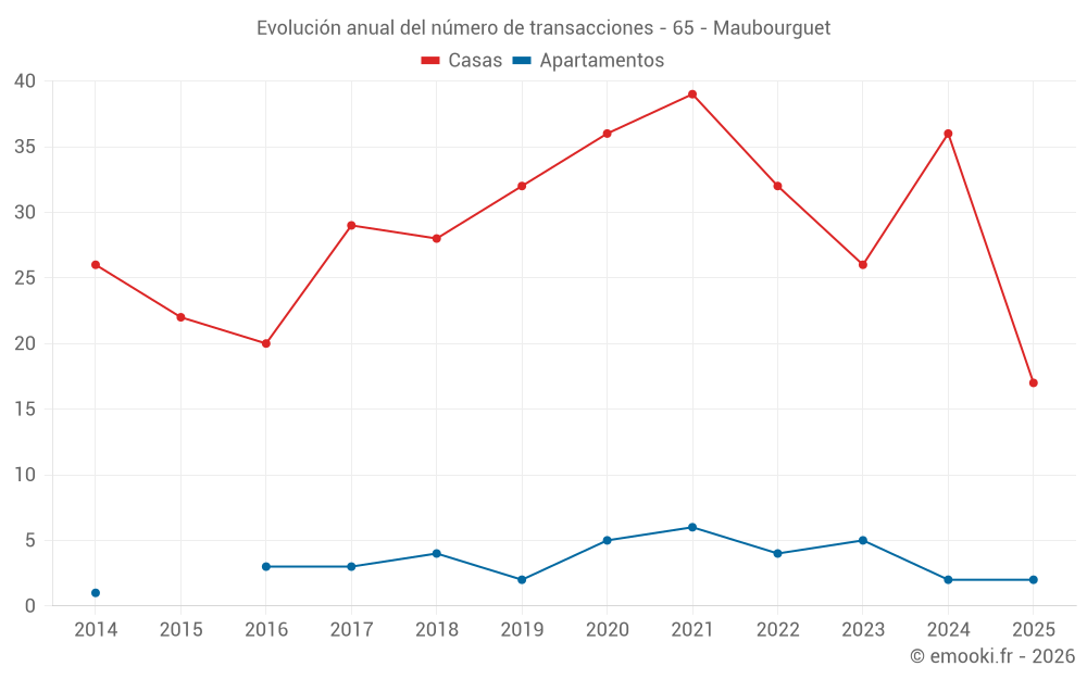 El precio mediano en las 37 transacciones de casas de los últimos 12 meses en la comuna de Maubourguet fue de 1 250 € por metro cuadrado para un valor patrimonial medio de 128 000 €. Durante este período el 60% de las transacciones estuvieron entre 847 y 1 728 € por metro cuadrado (del 2º al 8º decil).