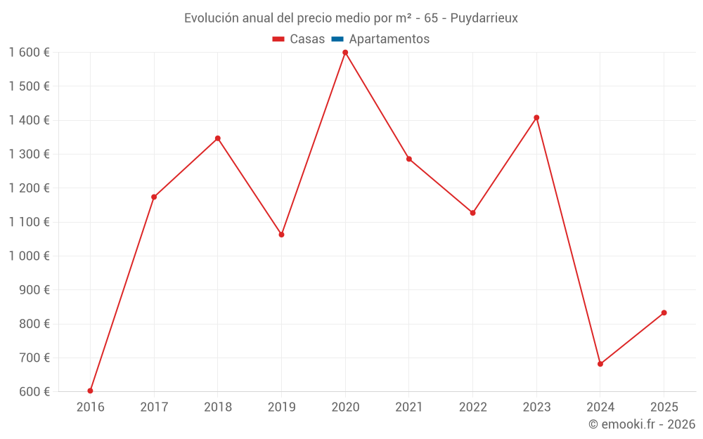 Mapa de precios de la vivienda en la comuna de Puydarrieux, elija una sección para ver las transacciones por parcela.