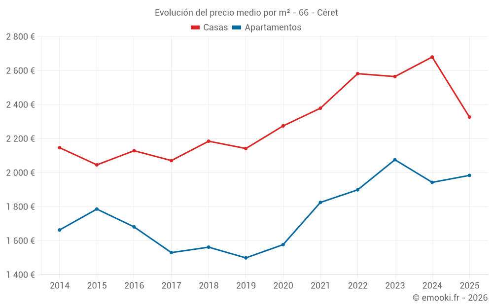 Mapa de precios de la vivienda en la comuna de Céret, elija una sección para ver las transacciones por parcela.