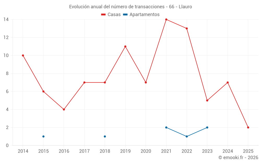 Mapa de precios de la vivienda en la comuna de Llauro, elija una sección para ver las transacciones por parcela.