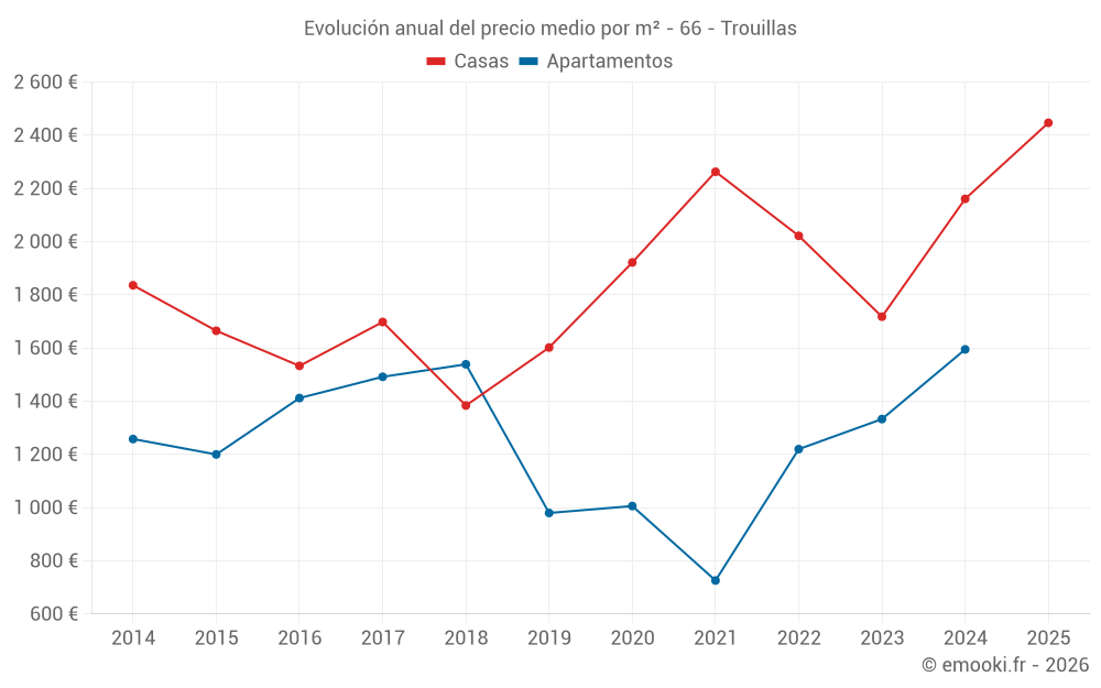 ¿Cuál es el precio por m2 de las casas en Trouillas?