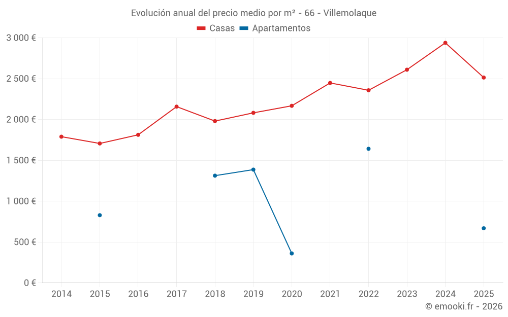 ¿Cuál es el precio por m2 de las casas en Villemolaque?