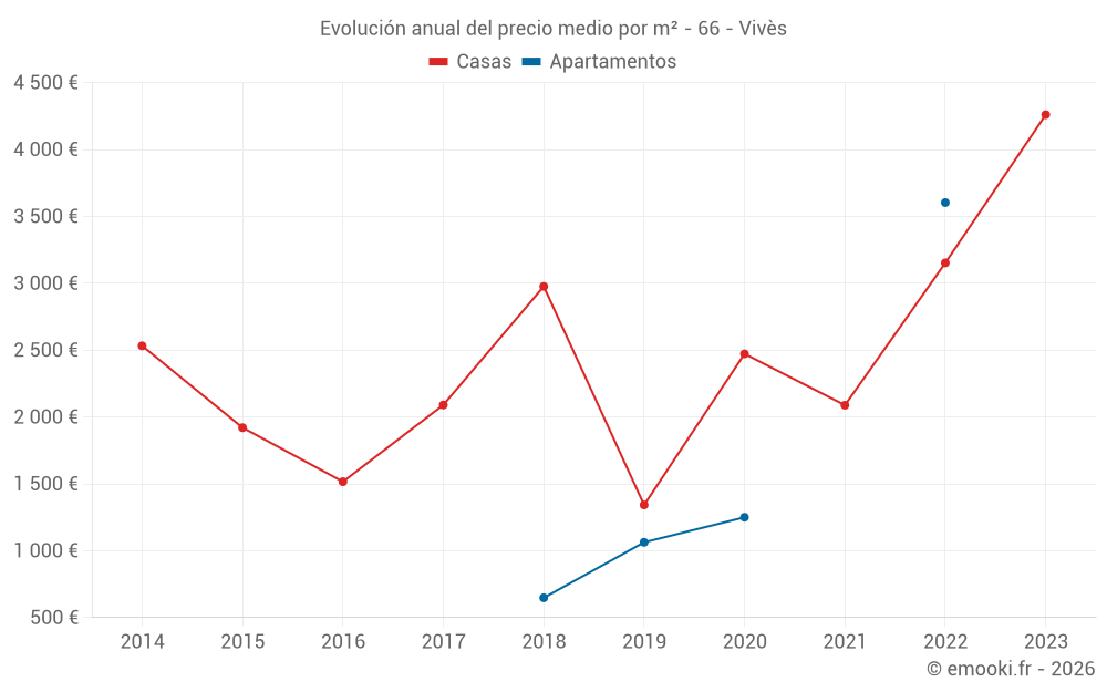 Evolución del precio medio por m² de las casas