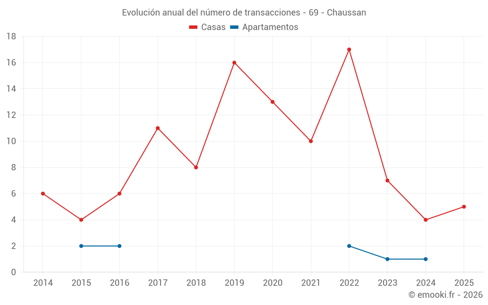 El precio mediano en las 14 transacciones de casas de los últimos 24 meses en la comuna de Chaussan fue de 3 638 € por metro cuadrado para un valor patrimonial medio de 357 000 €. Durante este período el 60% de las transacciones estuvieron entre 3 119 y 4 318 € por metro cuadrado (del 2º al 8º decil).