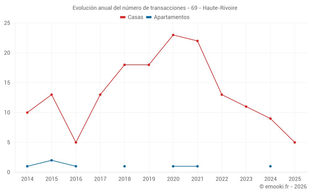 El precio mediano en las 20 transacciones de casas de los últimos 24 meses en la comuna de Haute-Rivoire fue de 1 793 € por metro cuadrado para un valor patrimonial medio de 216 750 €. Durante este período el 60% de las transacciones estuvieron entre 1 396 y 2 422 € por metro cuadrado (del 2º al 8º decil).