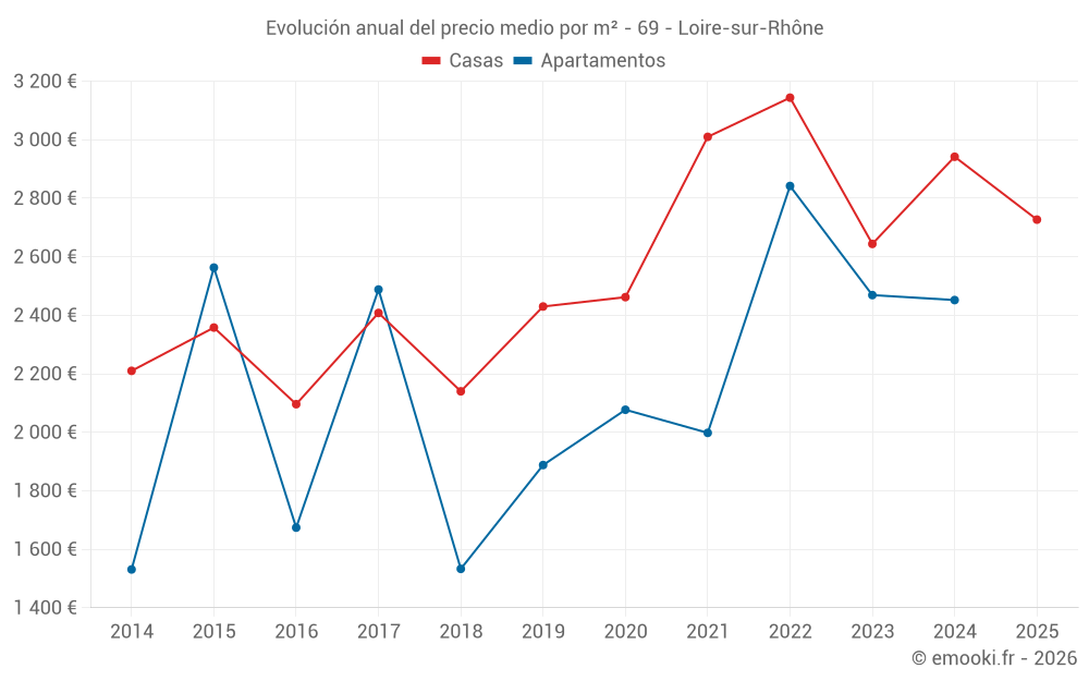 ¿Cuál es el precio por m2 de las casas en Loire-sur-Rhône?