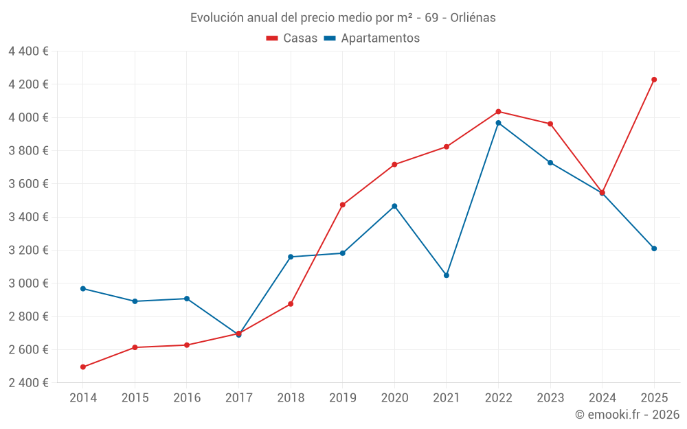 ¿Cuál es el precio por m2 de las casas en Orliénas?