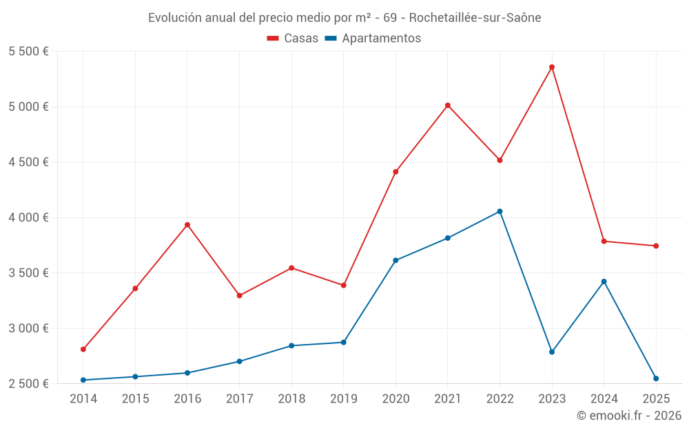 ¿Cuál es el precio por m2 de las casas en Rochetaillée-sur-Saône?