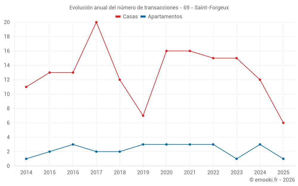 El precio mediano en las 27 transacciones de casas de los últimos 24 meses en la comuna de Saint-Forgeux fue de 2 349 € por metro cuadrado para un valor patrimonial medio de 257 000 €. Durante este período el 60% de las transacciones estuvieron entre 1 655 y 3 154 € por metro cuadrado (del 2º al 8º decil).