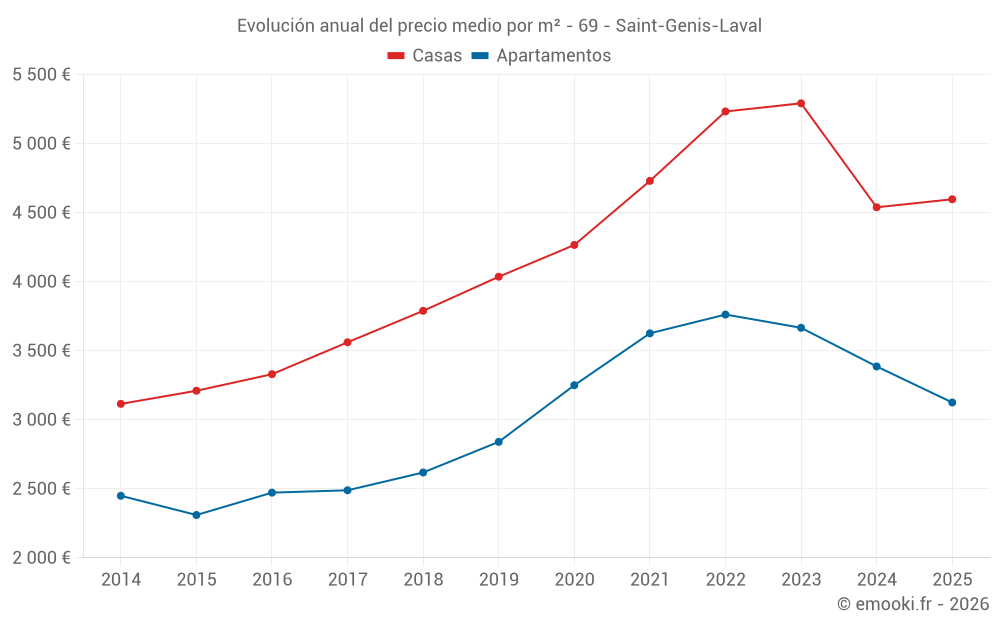 ¿Cuál es el precio por m2 de las casas en Saint-Genis-Laval?