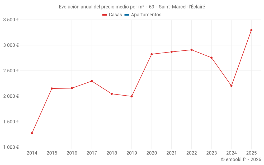 Evolución del precio medio por m² de las casas