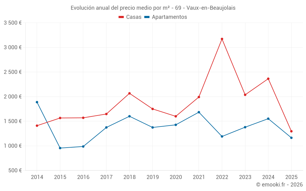 ¿Cuál es el precio por m2 de las casas en Vaux-en-Beaujolais?