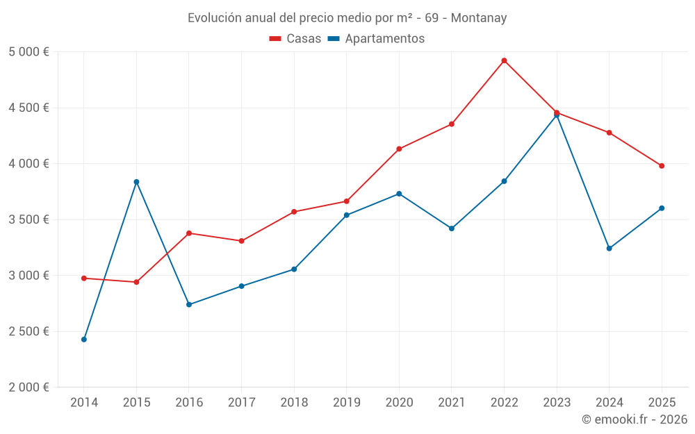 ¿Cuál es el precio por m2 de las casas en Montanay?