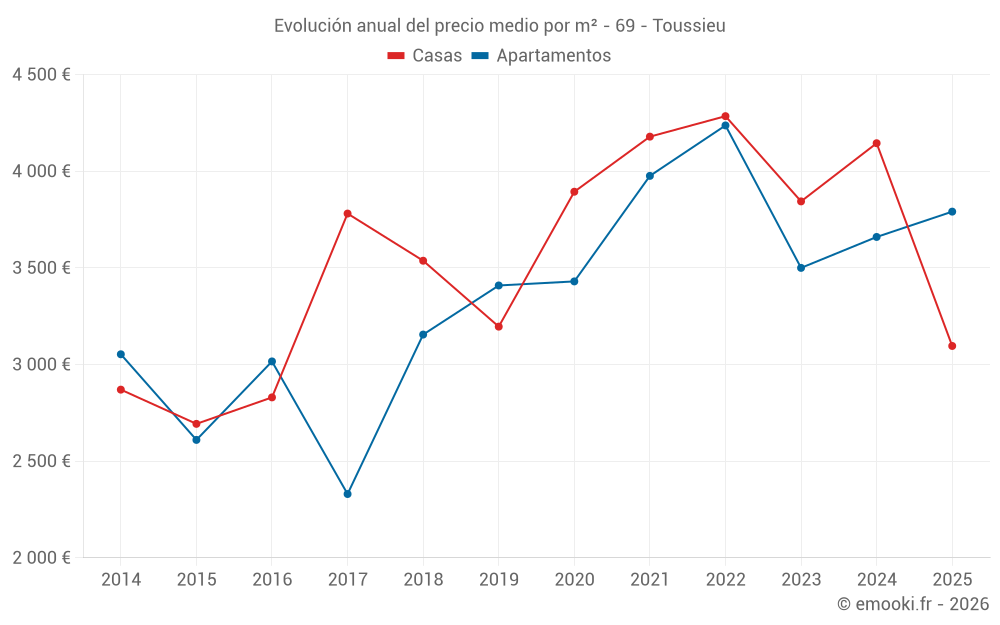 ¿Cuál es el precio por m2 de las casas en Toussieu?