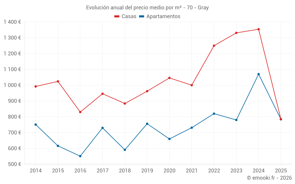 ¿Cuál es el precio por m2 de los apartamentos en Gray?