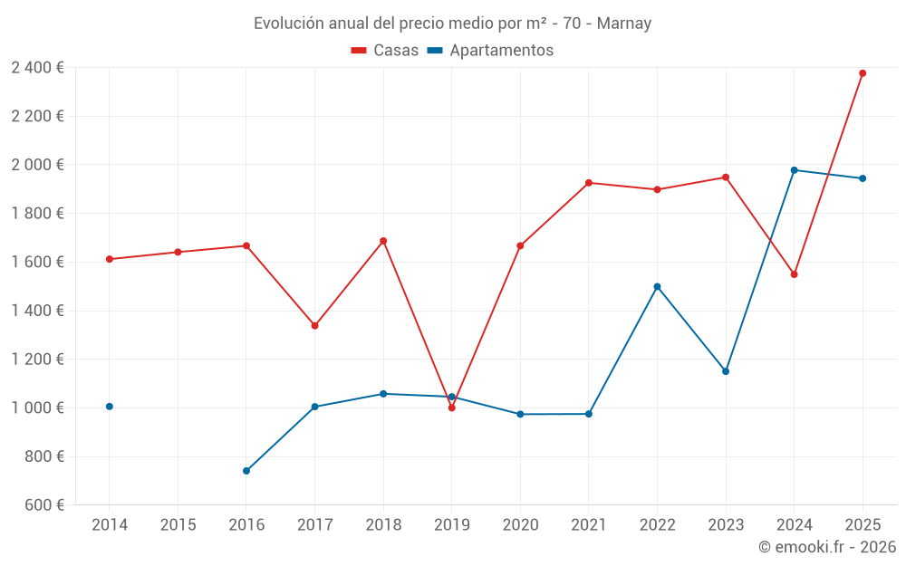 ¿Cuál es el precio por m2 de las casas en Marnay?