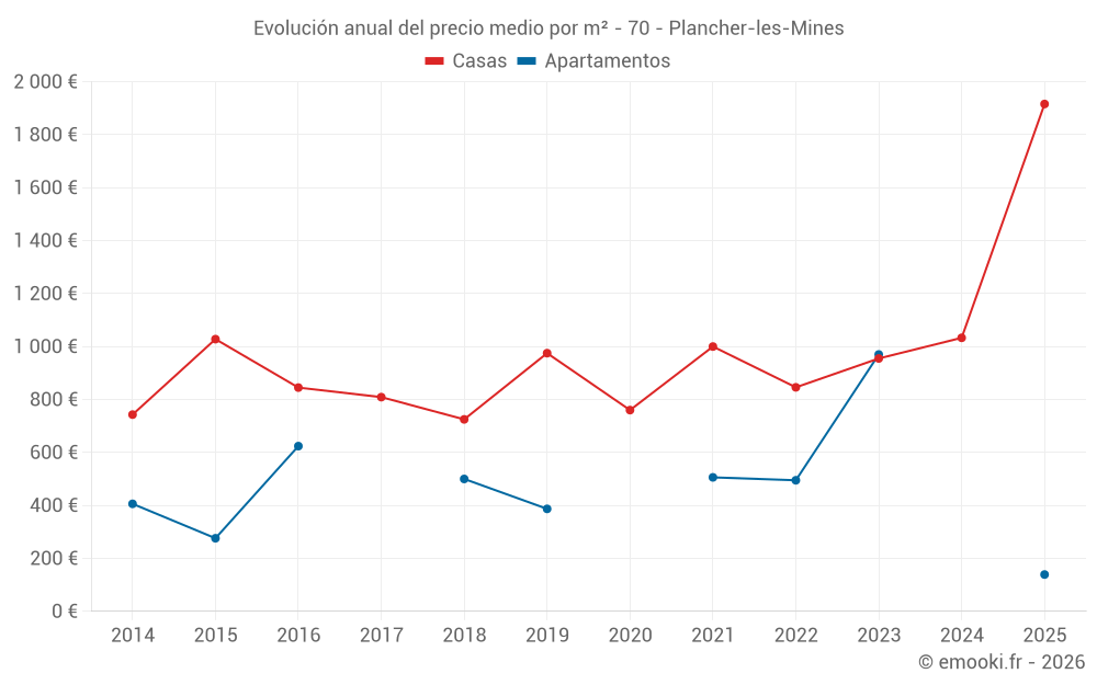 ¿Cuál es el precio por m2 de las casas en Plancher-les-Mines?