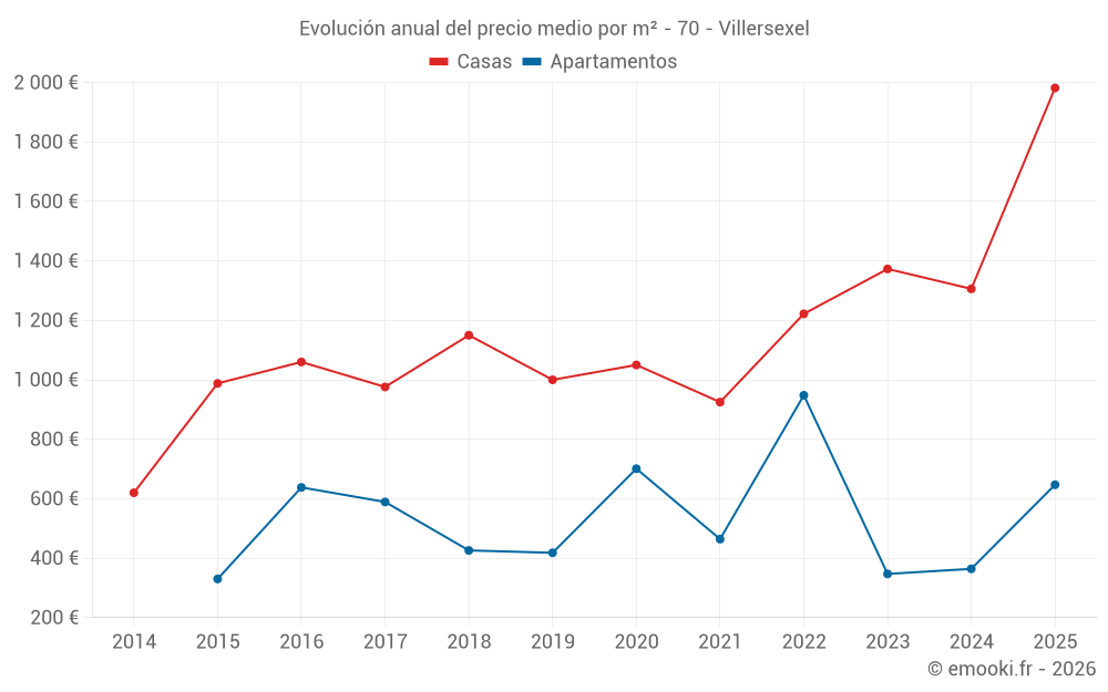 ¿Cuál es el precio por m2 de las casas en Villersexel?