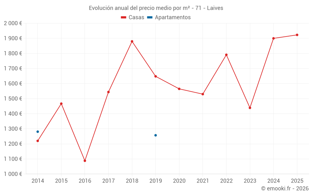 Evolución del precio medio por m² de las casas