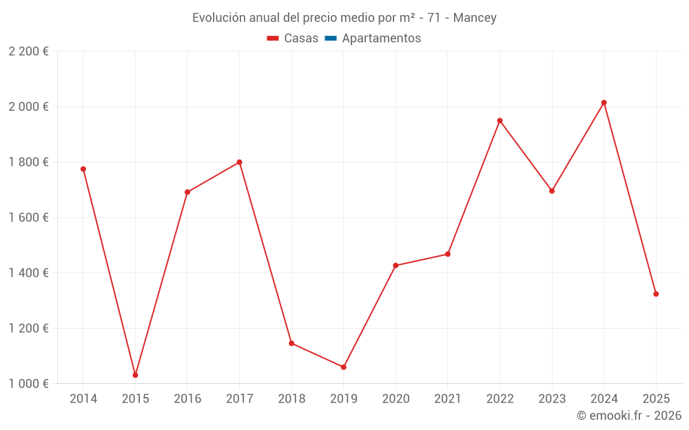 El precio por m² de las casas ha disminuido un 32% desde 3 años, pero ha aumentado un 25% en 6 años.
