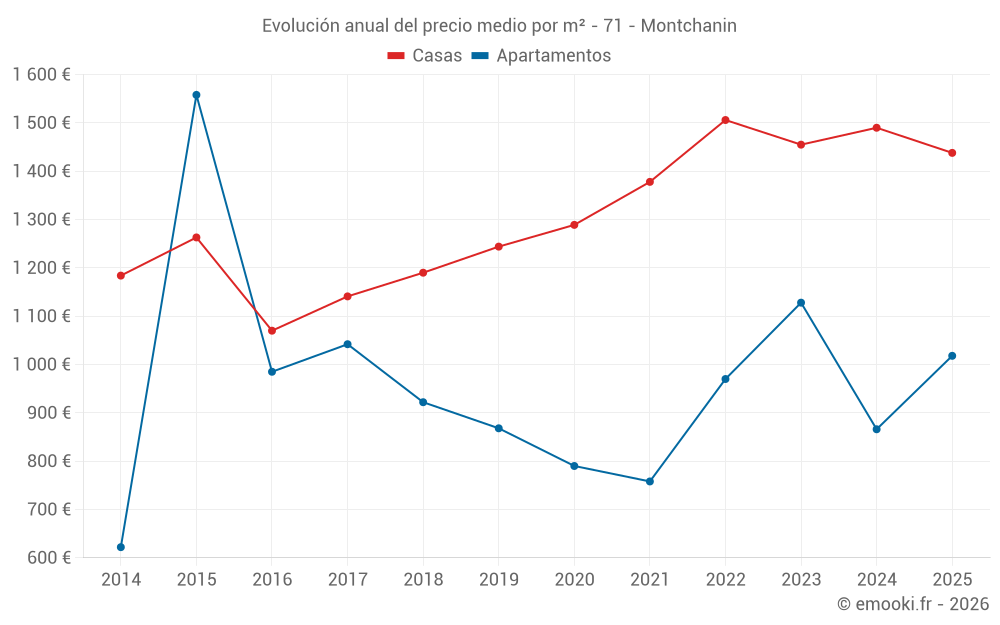 ¿Cuál es el precio por m2 de las casas en Montchanin?