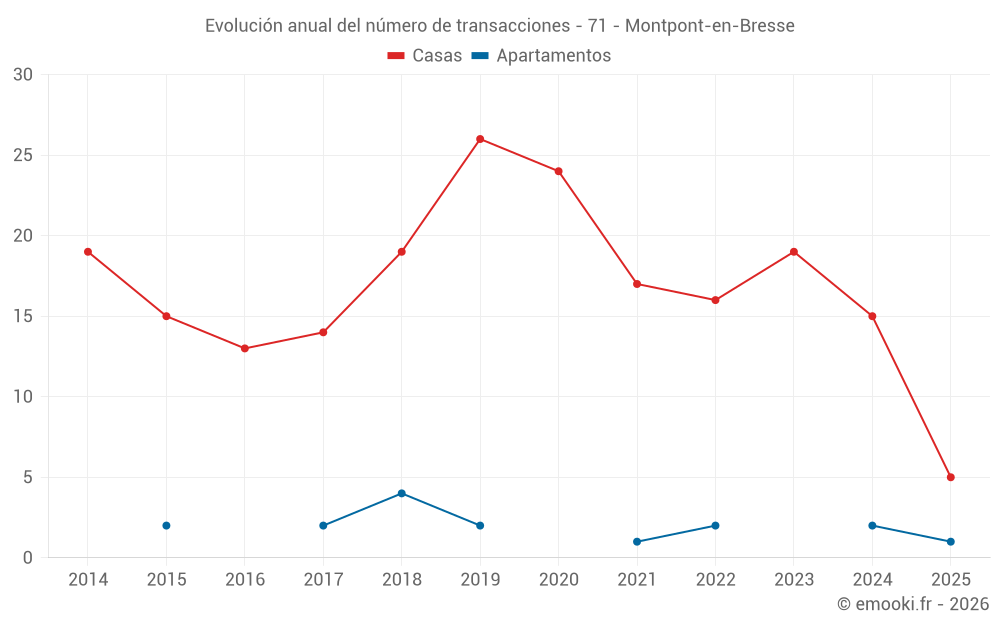 El precio mediano en las 32 transacciones de casas de los últimos 24 meses en la comuna de Montpont-en-Bresse fue de 1 378 € por metro cuadrado para un valor patrimonial medio de 130 700 €. Durante este período el 60% de las transacciones estuvieron entre 1 044 y 1 842 € por metro cuadrado (del 2º al 8º decil).