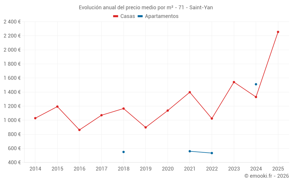 ¿Cuál es el precio por m2 de las casas en Saint-Yan?