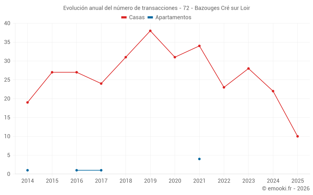 El precio mediano en las 22 transacciones de casas de los últimos 12 meses en la comuna de Bazouges Cré sur Loir fue de 1 529 € por metro cuadrado para un valor patrimonial medio de 155 000 €. Durante este período el 60% de las transacciones estuvieron entre 971 y 1 925 € por metro cuadrado (del 2º al 8º decil).
