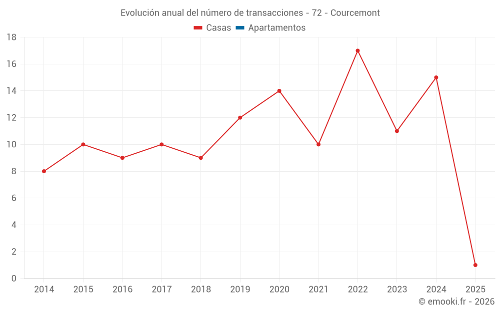 El precio mediano en las 19 transacciones de casas de los últimos 24 meses en la comuna de Courcemont fue de 1 300 € por metro cuadrado para un valor patrimonial medio de 123 000 €. Durante este período el 60% de las transacciones estuvieron entre 786 y 1 909 € por metro cuadrado (del 2º al 8º decil).