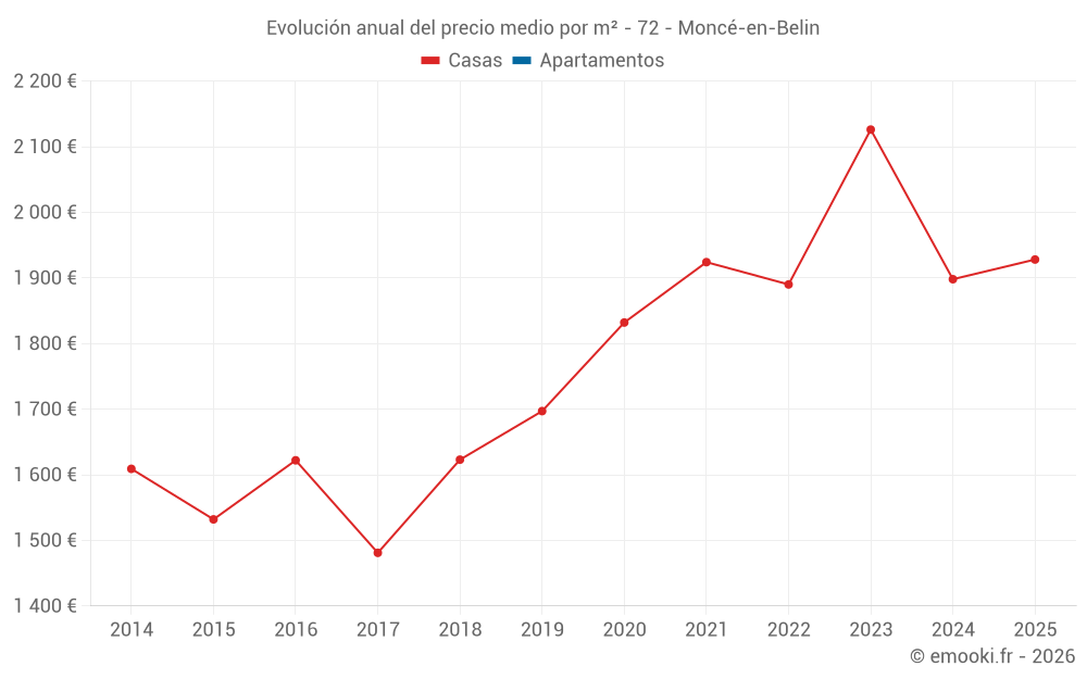 ¿Cuál es el precio por m2 de las casas en Moncé-en-Belin?