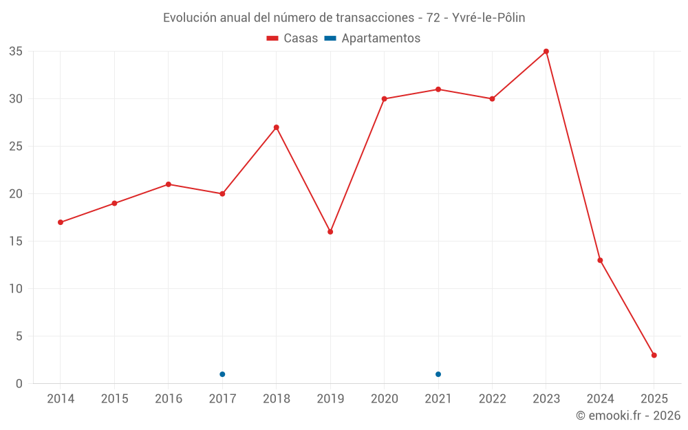 El precio mediano en las 30 transacciones de casas de los últimos 24 meses en la comuna de Yvré-le-Pôlin fue de 1 502 € por metro cuadrado para un valor patrimonial medio de 150 000 €. Durante este período el 60% de las transacciones estuvieron entre 1 129 y 2 018 € por metro cuadrado (del 2º al 8º decil).