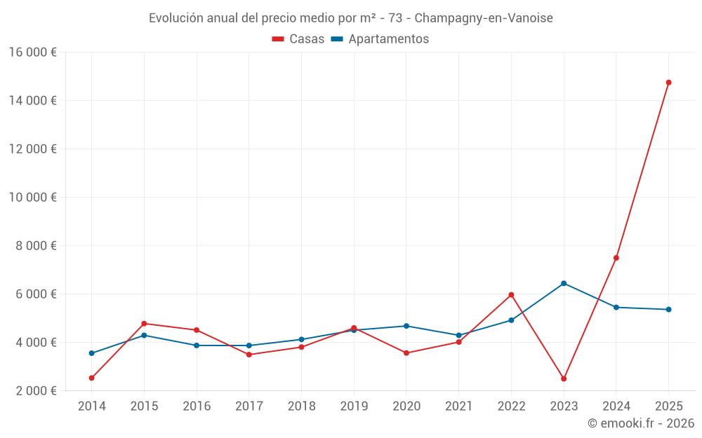 ¿Cuál es el precio por m2 de los apartamentos en Champagny-en-Vanoise?
