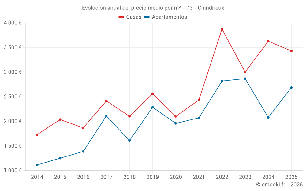¿Cuál es el precio por m2 de las casas en Chindrieux?