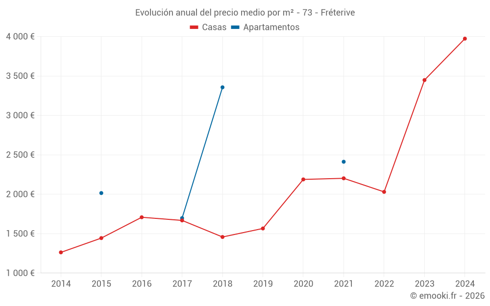 Evolución del precio medio por m² de las casas