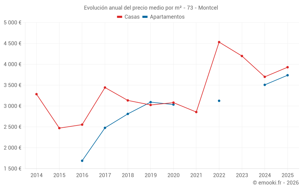 Evolución del precio medio por m² de las casas
