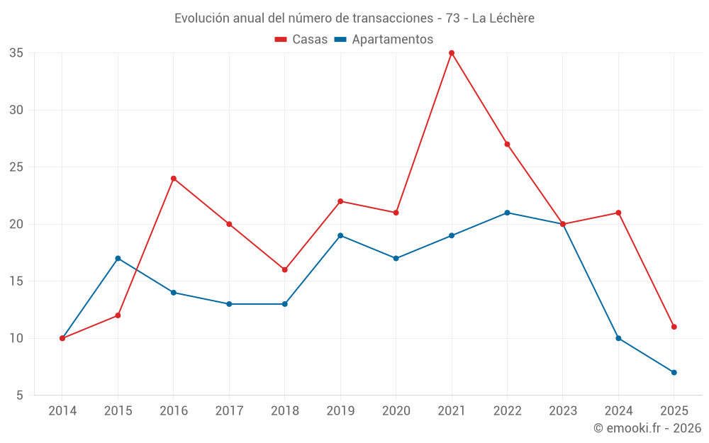 El precio mediano en las 25 transacciones de apartamentos de los últimos 24 meses en la comuna de La Léchère fue de 2 236 € por metro cuadrado para un valor patrimonial medio de 95 000 €. Durante este período el 60% de las transacciones estuvieron entre 1 482 y 3 069 € por metro cuadrado (del 2º al 8º decil).