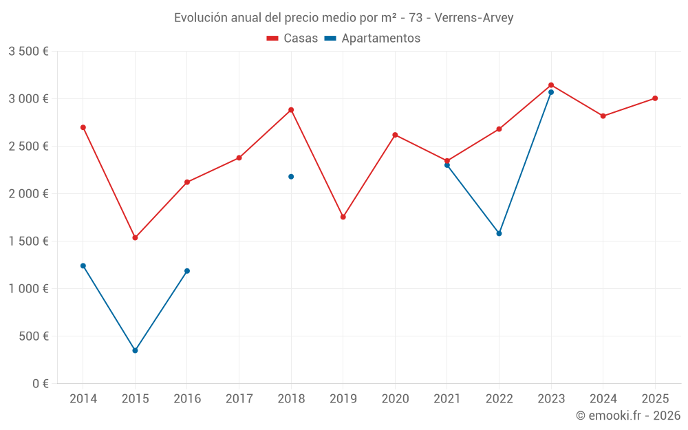 ¿Cuál es el precio por m2 de las casas en Verrens-Arvey?