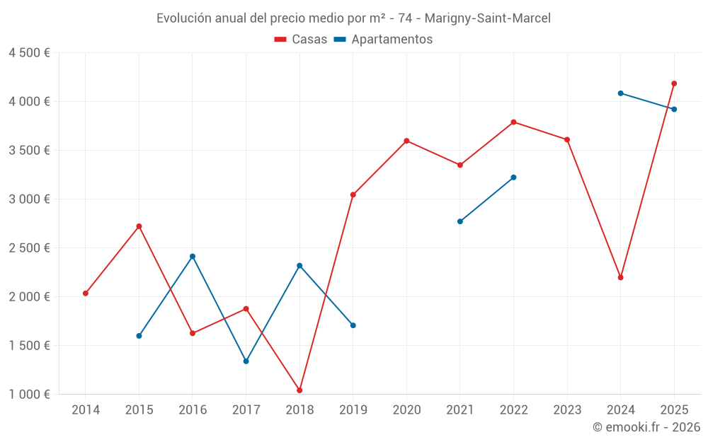 Evolución del precio medio por m² de las casas
