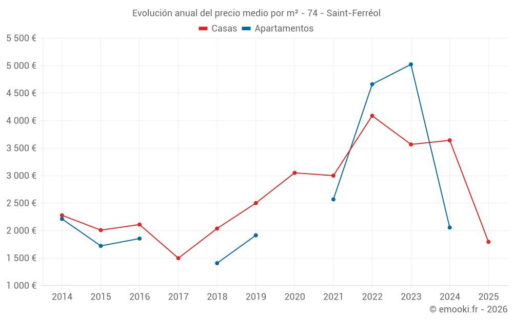 Evolución del precio medio por m² de las casas