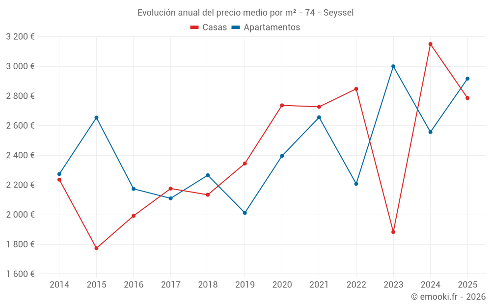 ¿Cuál es el precio por m2 de las casas en Seyssel?