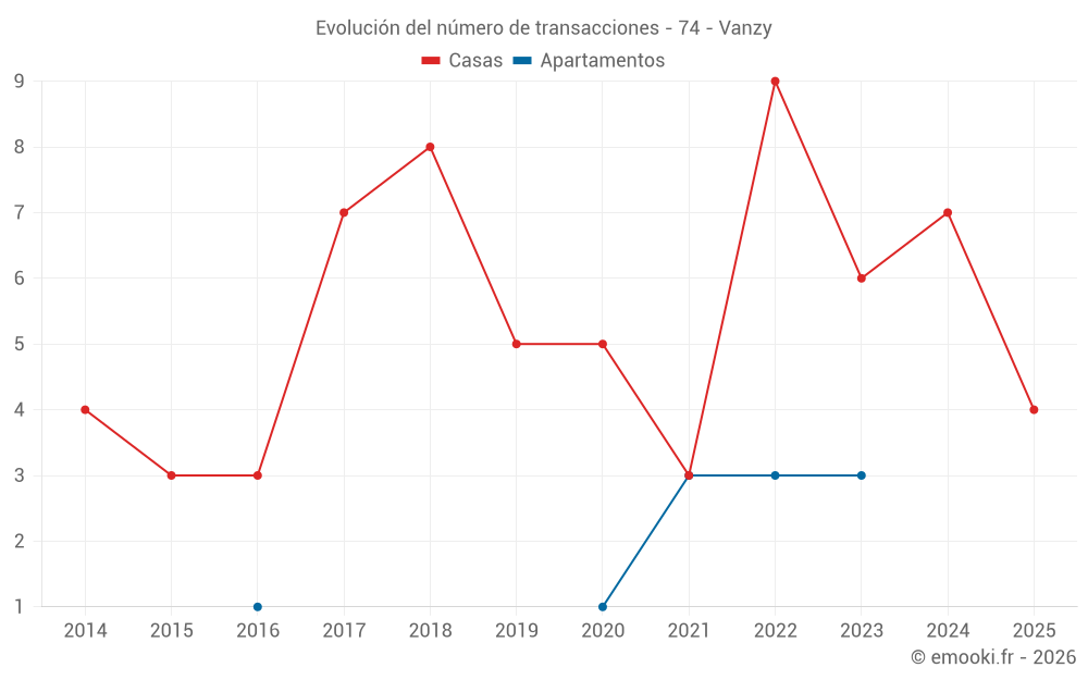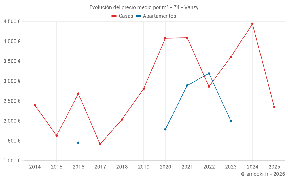 El precio mediano en las 16 transacciones de casas de los últimos 24 meses en la comuna de Vanzy fue de 3 604 € por metro cuadrado para un valor patrimonial medio de 303 025 €. Durante este período el 60% de las transacciones estuvieron entre 2 220 y 4 681 € por metro cuadrado (del 2º al 8º decil).