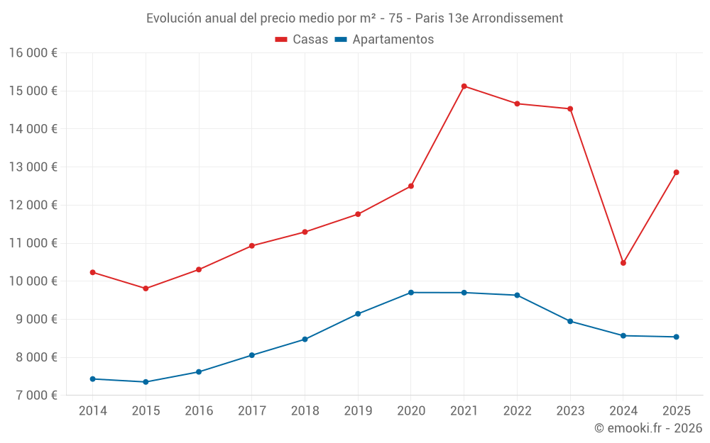 ¿Cuál es el precio por m2 de las casas en Paris 13e Arrondissement?