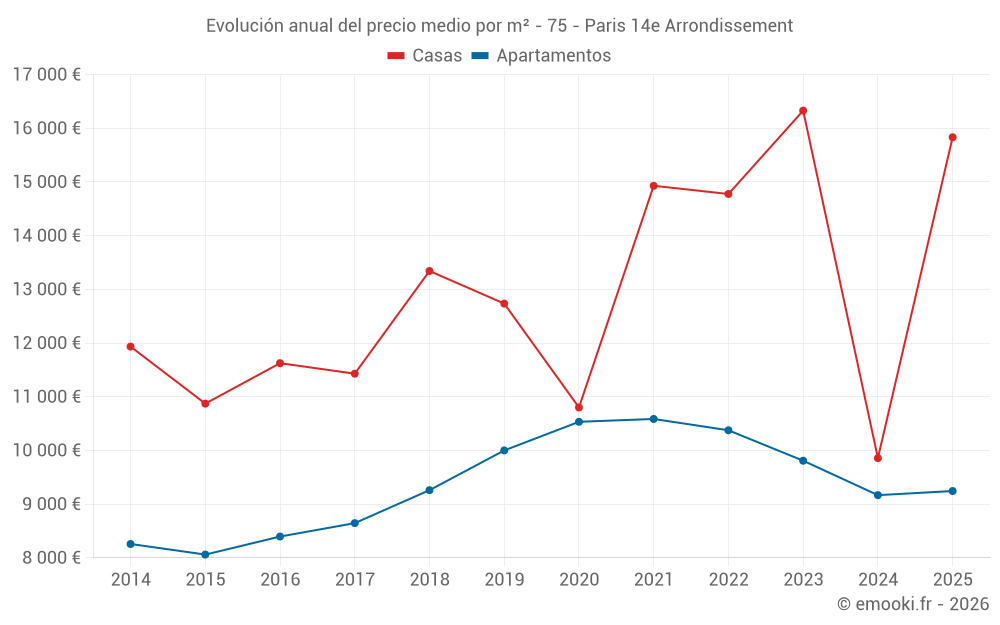 ¿Cuál es el precio por m2 de las casas en Paris 14e Arrondissement?