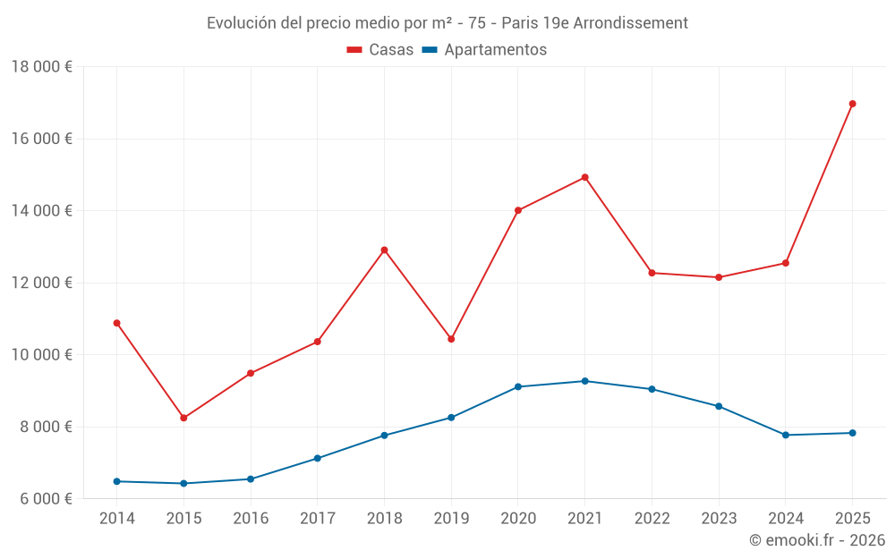 Mapa de precios de la vivienda en la comuna de Paris 19e Arrondissement, elija una sección para ver las transacciones por parcela.