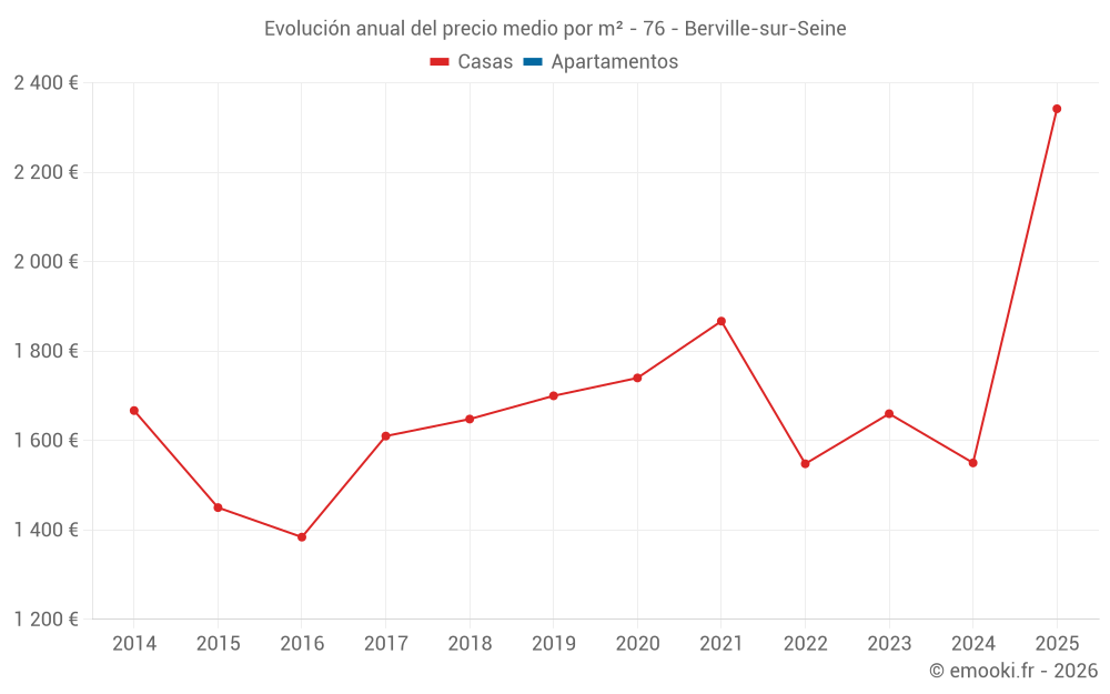 Evolución del precio medio por m² de las casas